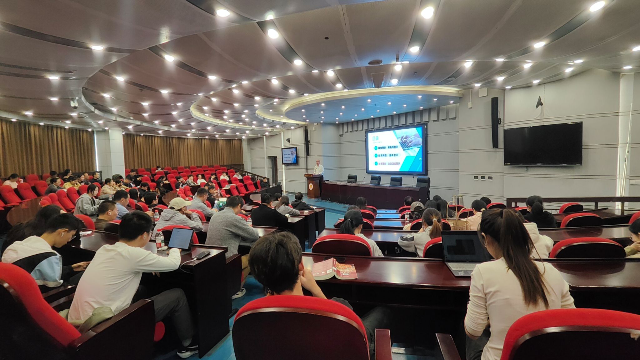 江苏警官学院计算机信息与网络安全系主任王群教授应邀作了题为“攻防视角下的校园网络安全挑战”的讲座。王群教授从攻防双重视角,深入剖析当前校园网络安全面临的严峻形势,结合真实案例解读终端设备、数据传输、系统管理以及不规范上网行为等场景中的安全风险,并提供了专业的风险预判与应急处置方案。